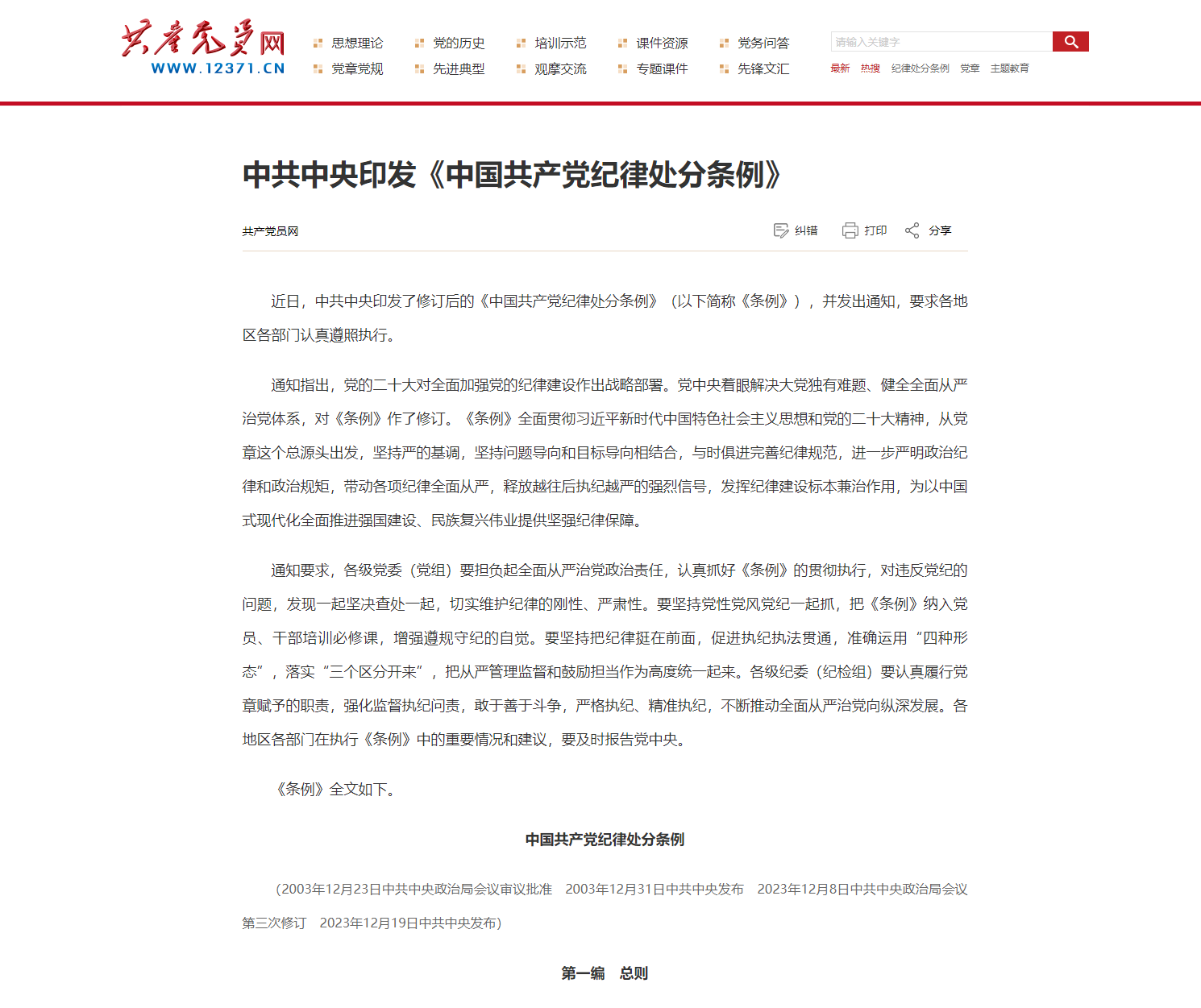 中國(guó)共產(chǎn)黨問責(zé)條例(2019年修訂,自2019年9月1日起施行) 第一條為了堅(jiān)持黨的領(lǐng)導(dǎo),加強(qiáng)黨的建設(shè),全面從嚴(yán)治黨,保證黨的路線方針政策和黨中央重大決策部署貫徹落實(shí),規(guī)范和強(qiáng)化黨的問責(zé)工作,根據(jù)《中國(guó)共產(chǎn)黨章程》,制定本條例。第二條黨的問責(zé)工作堅(jiān)持以馬克思列寧主義、毛澤東思想、鄧小平理論、“三個(gè)代表”重要思想、科學(xué)發(fā)展觀、習(xí)近平新時(shí)代中國(guó)特色社會(huì)主義思想為指導(dǎo),...
