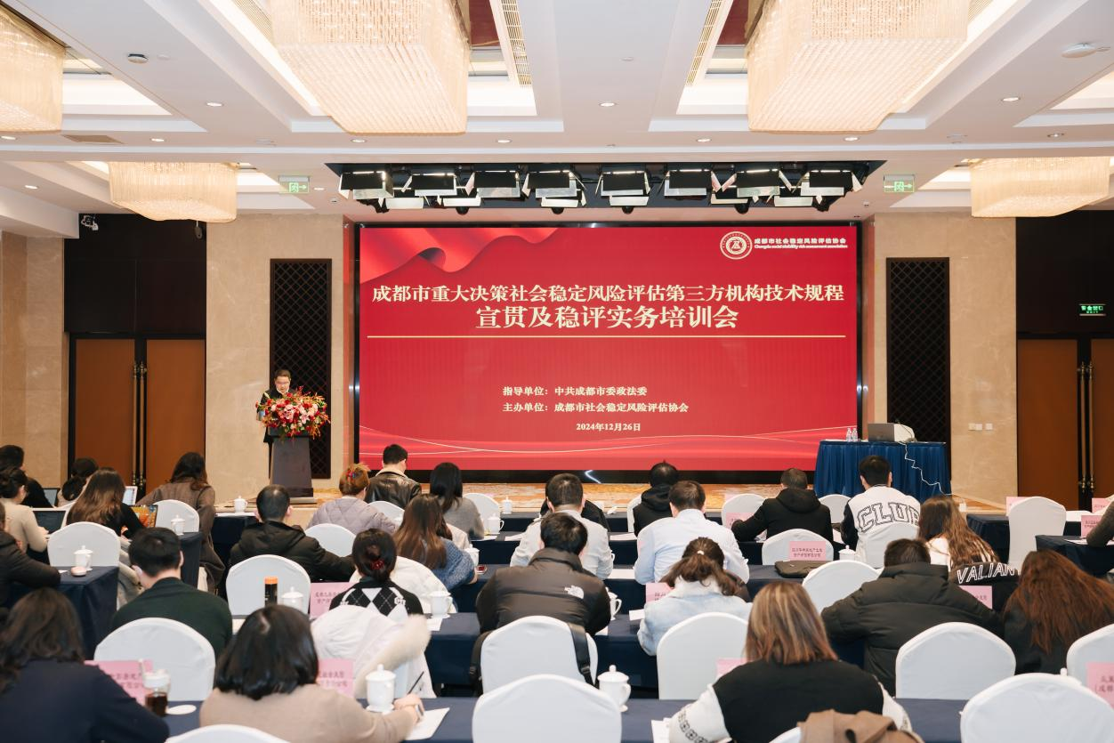 2024年12月26日,《成都市重大決策社會穩(wěn)定風險評估第三方機構技術規(guī)程(2024年版)》宣貫及穩(wěn)評實務培訓會在成都順利舉行。