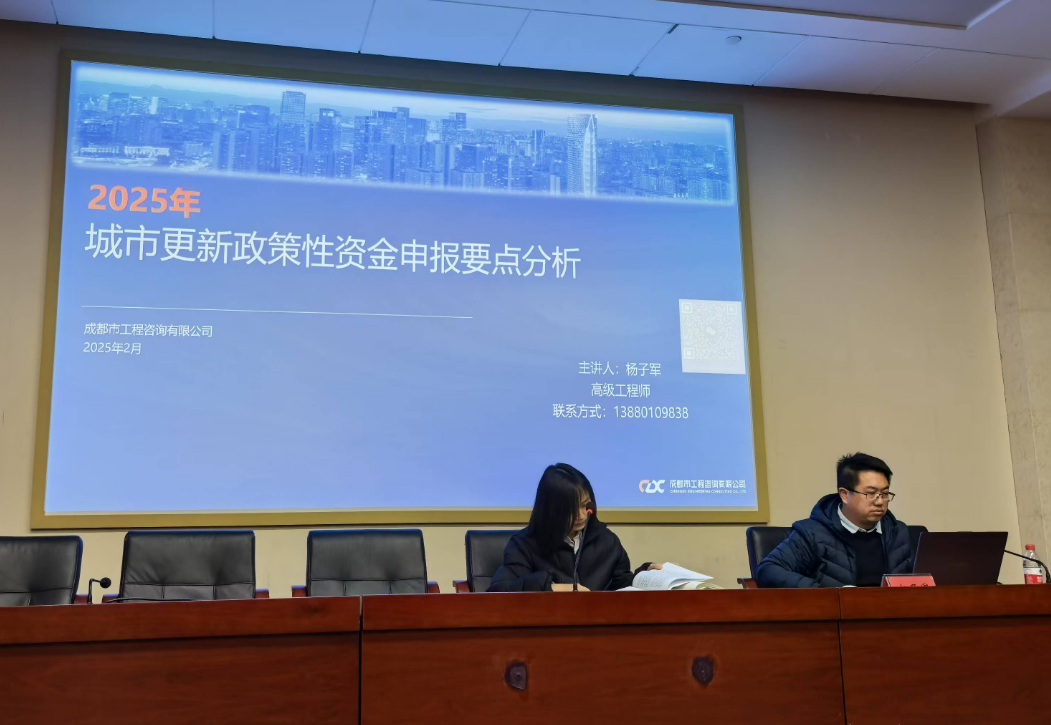 為落實(shí)國家和省市有關(guān)實(shí)施城市更新行動的工作部署,準(zhǔn)確把握城市更新領(lǐng)域超長期特別國債、地方政府專項債、中央預(yù)算內(nèi)資金申報要求,圍繞城市更新八大任務(wù)做好項目包裝、儲備和申報工作,最大限度承接國家政策紅利,助力成都市經(jīng)濟(jì)社會高質(zhì)量發(fā)展,2月13日,成咨公司受成都市住建局邀請開展2025年城市更新政策性資金申報專題培訓(xùn),市住建局、各區(qū)(市)縣住建局和城市更新工作具體實(shí)施單位相關(guān)工作人員共計100余人參加本次培訓(xùn),本次培訓(xùn)會得到了參會單位的高度認(rèn)可。公司黨支部書記、執(zhí)行董事、總經(jīng)理陳崎虎及公司城市有機(jī)更新項目組參與培訓(xùn)。