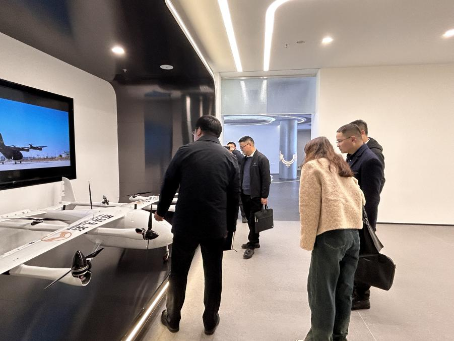 在沃飛長空新落成的企業(yè)展廳,調(diào)研組深度體驗(yàn)了智能飛行器、無人機(jī)系統(tǒng)等前沿科技成果,系統(tǒng)了解低空飛行領(lǐng)域從技術(shù)研發(fā)到商業(yè)應(yīng)用的全鏈條創(chuàng)新實(shí)踐。沃飛長空副總裁兼首席公共關(guān)系官肖前志重點(diǎn)介紹了企業(yè)在eVTOL(電動(dòng)垂直起降飛行器)、城市空中交通等領(lǐng)域的突破性進(jìn)展。