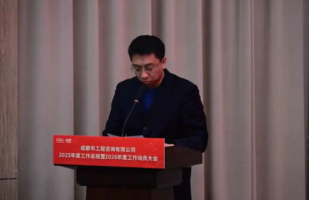 馬躍開新局,咨繪高質(zhì)量。1月28日,成都市工程咨詢有限公司召開2025年度工作總結(jié)暨2026年度工作動(dòng)員大會。集團(tuán)黨委副書記、副董事長、總經(jīng)理陸輝,集團(tuán)黨委專職副書記、董事、工會主席劉洋海出席。公司黨總支書記、董事、總經(jīng)理陳崎虎主持會議。公司領(lǐng)導(dǎo)班子、公司及魚鳧咨詢公司全體員工參加會議。