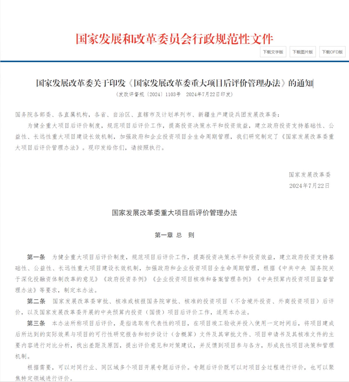 為健全重大項(xiàng)目后評(píng)價(jià)制度,規(guī)范項(xiàng)目后評(píng)價(jià)工作,提高投資決策水平和投資效益,建立政府投資支持基礎(chǔ)性、公益性、長(zhǎng)遠(yuǎn)性重大項(xiàng)目建設(shè)長(zhǎng)效機(jī)制,加強(qiáng)政府和企業(yè)投資項(xiàng)目全生命周期管理,我們研究制定了《國(guó)家發(fā)展改革委重大項(xiàng)目后評(píng)價(jià)管理辦法》。現(xiàn)印發(fā)給你們,請(qǐng)按照?qǐng)?zhí)行。